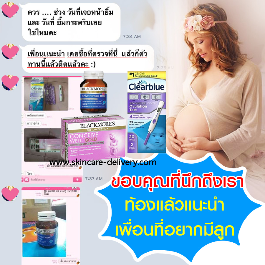 Blackmores Conceive Well Gold วิตามินเพิ่มคนอยากมีน้อง เพิ่มโอกาสในการตั้งครรภ์ด้วยวิตามินเสริมผสม CoQ10 และ Folic ของแท้จากออสเตรเลีย ราคา 1250 สูตรบำรุงไข่ และบำรุงร่างกาย เป็นวิตามินเตรียมความพร้อมของร่างกาย มดลูก ทำให้ไข่สมบูรณ์ ไม่ต้องรับประทานอาหารเสริมมากมาย รับประทาน Blackmores Conceive Well Gold เพียง 2 เม็ด ต่อ 1 วัน เพียงพอแล้วค่ะ