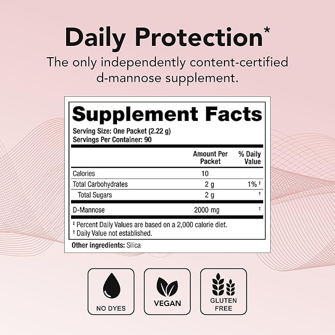 เป็นอาหารเสริม D–mannose เพียงชนิดเดียวที่ได้รับการรับรองความถูกต้องของปริมาณ (Content Certified) จากหน่วยงานอิสระ