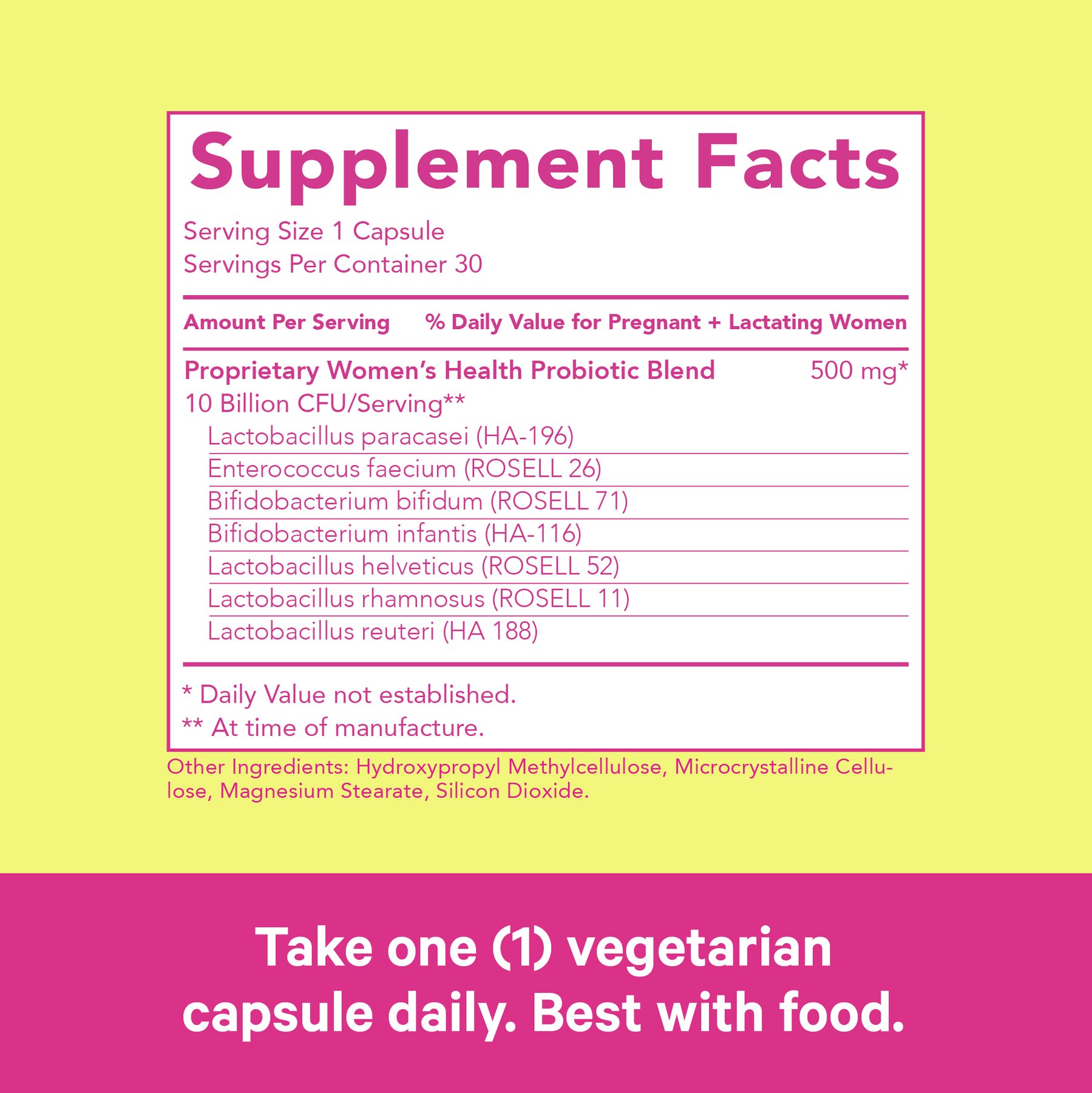 Lactobacillus paracasei, Enterococcus faecium, Bifidobacterium bifidum, Bifidobacterium infantis, Lactobacillus helveticus, Lactobacillus rhamnosus, and Lactobacillus reuteri. Hydroxypropyl Methylcellulose, Microcrystalline Cellulose, Magnesium Stearate, Silicon Dioxide