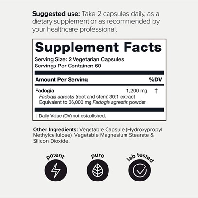 ผลิตภัณฑ์เสริมอาหารสารสกัดจาก Fadogia Agrestis 36,000 มก. - Fadogia Agrestis 30:1 - ปริมาณ 1,200 มก. ต่อหน่วยบริโภค - สารสกัดเข้มข้นที่ผ่านการทดสอบโดยบุคคลที่สาม - มีความบริสุทธิ์และมีประโยชน์ทางชีวภาพสูง - จำนวน 120 แคปซูลจากพืช