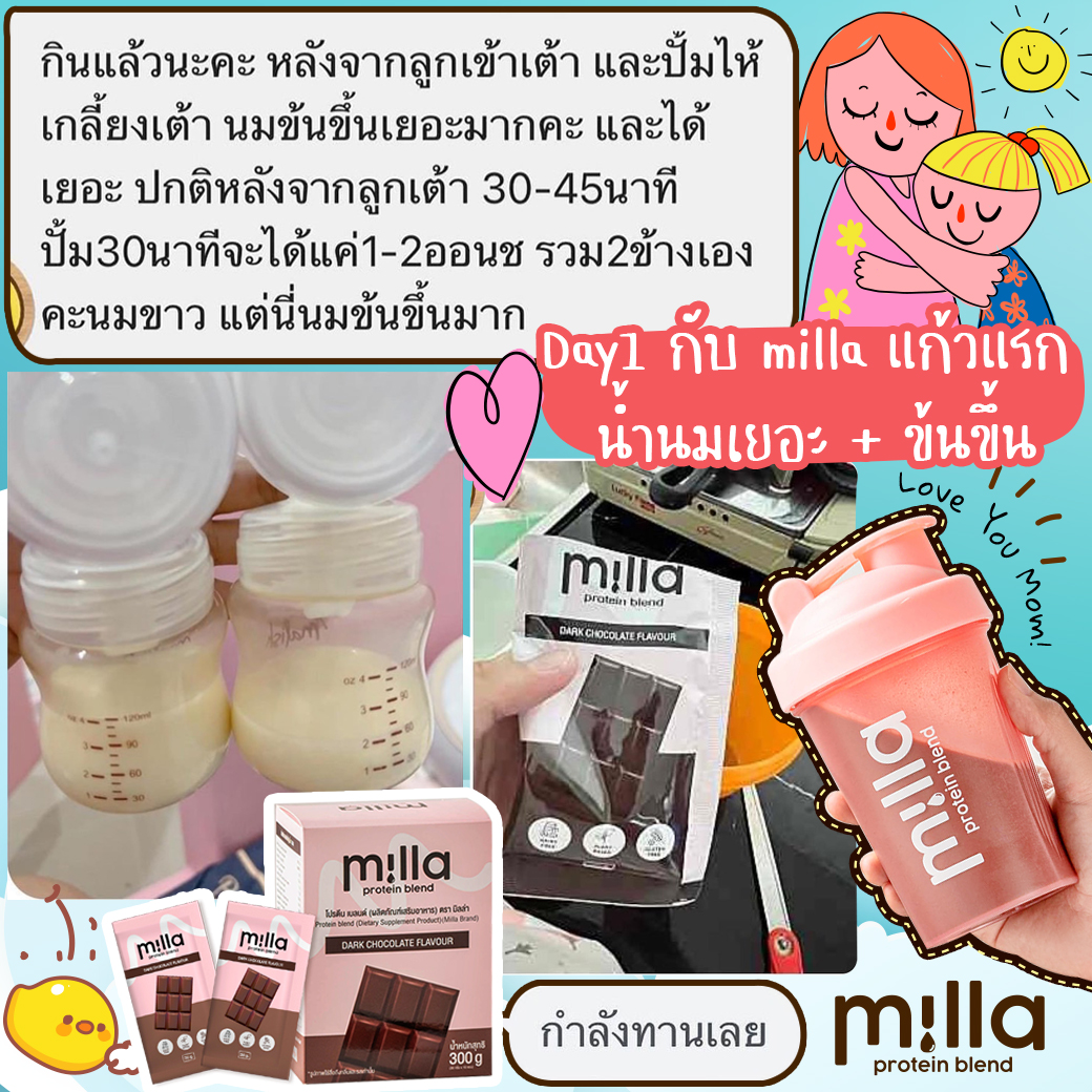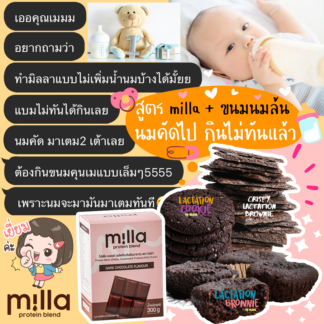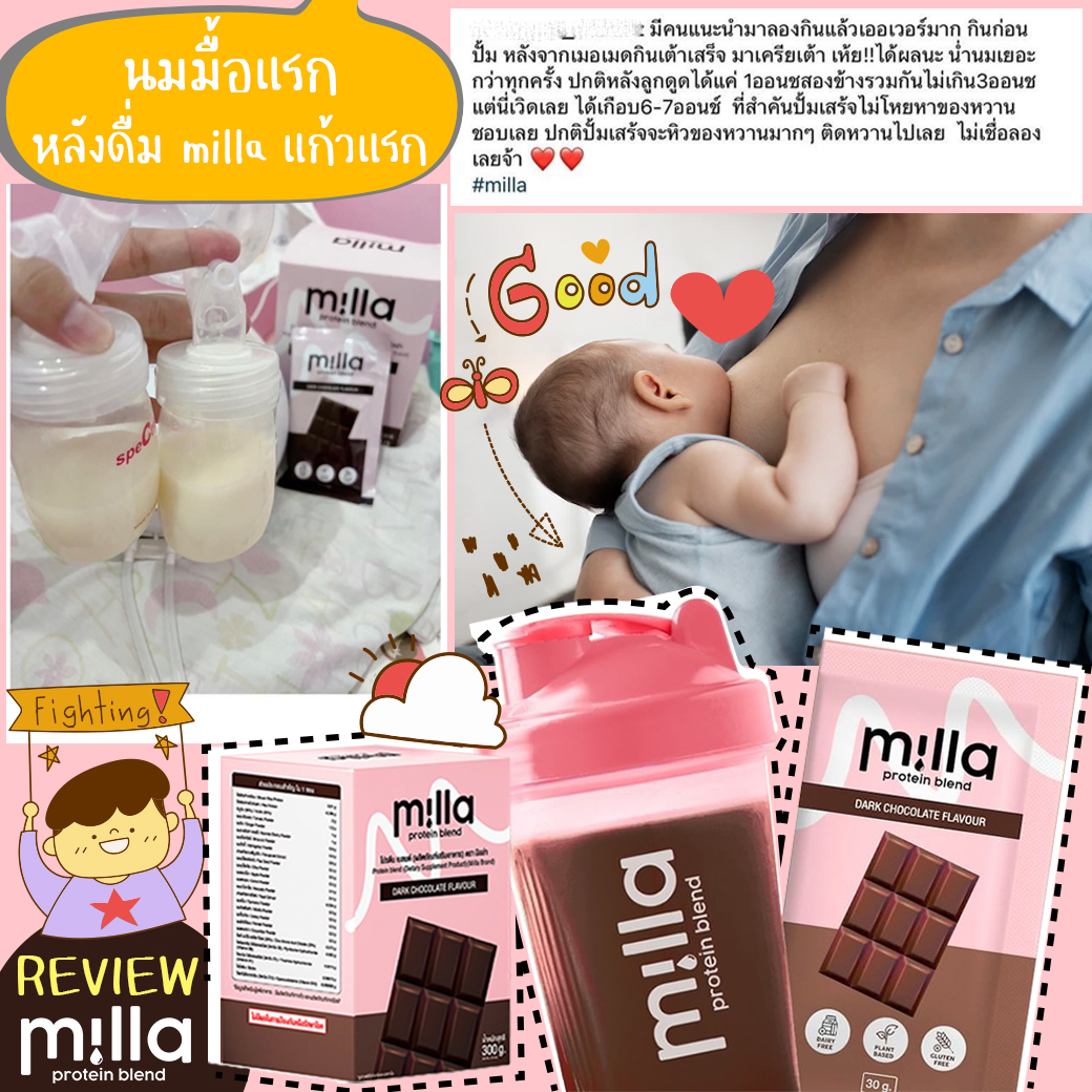 Milla Protein Blend โปรตีนสำหรับแม่ให้นมในสูตรที่ครบที่สุด ผลิตภัณฑ์ที่ทำมาเพื่อการแก้ปัญหาวงจรการเสพติดน้ำตาลและแป้งของคุณแม่ คุณจึงต้องการโปรตีนและสารอาหารที่เพียงพอในทุกๆมื้อเพื่อการลดน้ำหนักที่ดีและยังคงปริมาณน้ำนมไว้ให้เพียงพอกับการเลี้ยงดูทารกน้อย Milla คำนึงถึงความสะดวกในการใช้ชีวิตและการเตรียมสารอาหารสำหรับคุณแม่ จึงมีส่วนประกอบของโปรตีนเป็นสารอาหารหลักเพื่อให้คุณอิ่มท้องยาวนานลดการเกิดอาการอยากของหวานที่มักทำให้ได้รับแคลอรี่เกินความต้องการ มีวิตามิน แร่ธาตุ อีกทั้งยังมีสารสกัดจากสมุนไพรที่ดีต่อการเพิ่มปริมาณน้ำนมของคุณแม่มาอย่างครบถ้วน อีกทั้งยังมีรสชาติดีดื่มง่าย ให้คุณแม่ได้อารมณ์ดีในทุกวัน